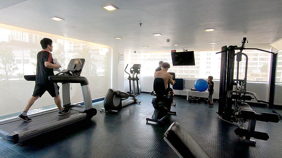 인터넷에 수영장 규모가 작다는 글이 있는데, 적당한 규모. 샤워장도 있지만, 오픈된 구조라 간단한게 씻기위한 용도로 쓰인다. 오른쪽에 수건은 넉넉하게 준비되 있습니다. 옷을 갈아 입기가 불편해서 수건으로 몸을 감싸고 방으로 들어갔다. 1번 건물에 방이 있는 사람들은 그냥 물기만 대충 닦고, 젖은 수영복 입은 채로 가야 할 것입니다.